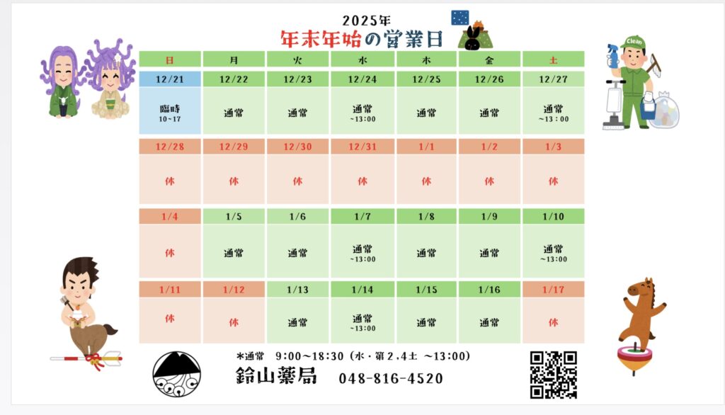 12月29日から1月4日(日)は年末年始のためお休みとなります。